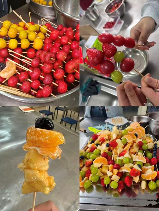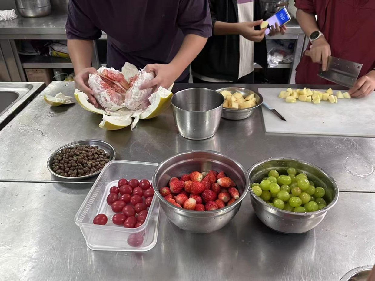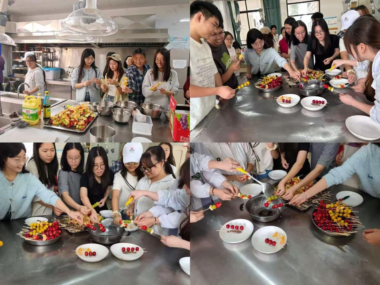 活动筹备阶段,8308实验室便充满了忙碌的身影。协会成员化身“美食研发官”,从食材甄选到配方调试层层把关:精选酸甜多汁的新鲜山楂,搭配草莓、圣女果、山药豆等多元食材;反复试验糖浆比例,精准把控熬糖温度,只为找到口感最佳的“琥珀糖衣”配方,将对传统美食的敬畏与创新的热情融入每一处细节。